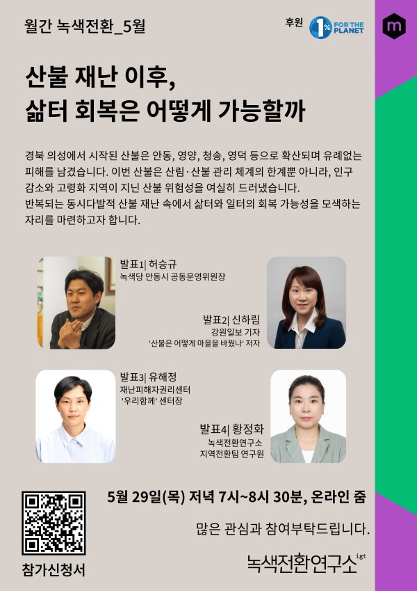 [5월, 월간 녹색전환] 산불 재난 이후, 삶터 회복은 어떻게 가능할까