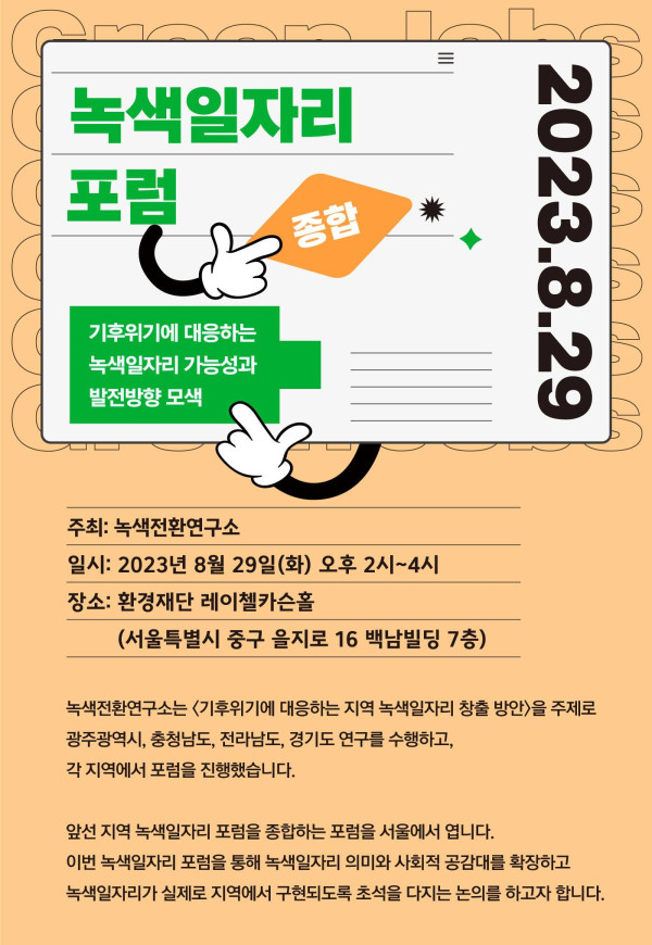 종합 녹색일자리 포럼: 기후위기에 대응하는 지역 녹색일자리 가능성과 발전방향 모색