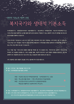 제2차 생태적 기본소득 포럼 "복지국가와 생태적 기본소득" 개최 안내