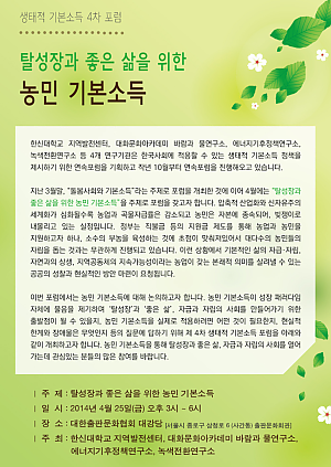 제4차 생태적 기본소득 포럼 "탈성장과 좋은 삶을 위한 농민 기본소득" 개최 안내