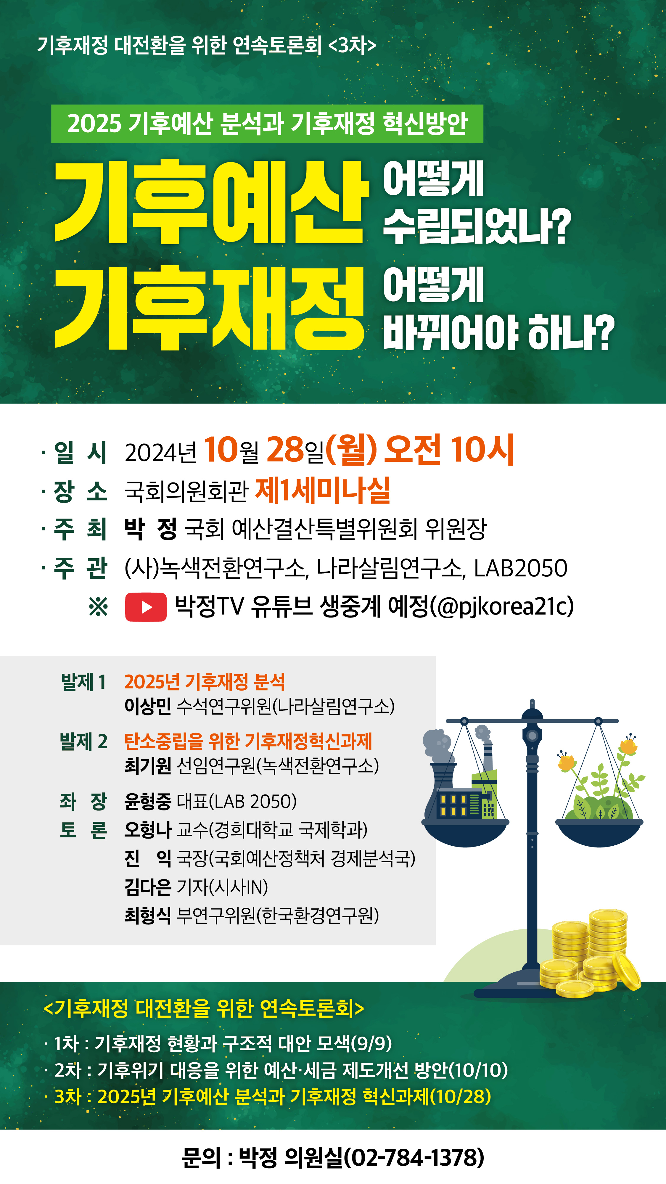 [토론회 자료집] 기후예산 어떻게 수립되었나? 기후재정 어떻게 바뀌어야 하나? 2024-10-28 0 19 2024.10.28 09:33 소개 첨부파일 [토론회 자료집] 기후예산 어떻게 수립되었나 기후재정 어떻게 바뀌어야 하나_20241028.pdf 요약