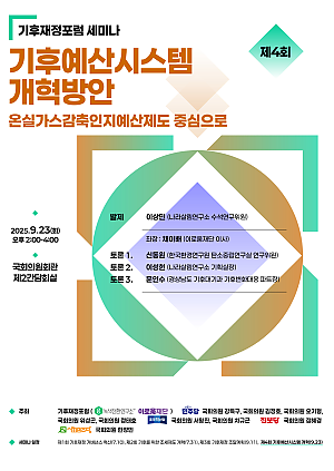 [토론회] 제4회 기후재정포럼 세미나 "기후예산시스템 개혁방안: 온실가스감축인지예산제도 중심으로"