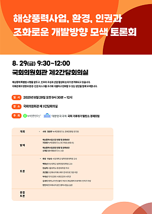 [토론회] 해상풍력사업, 환경, 인권과 조화로운 개발방향 모색 토론회