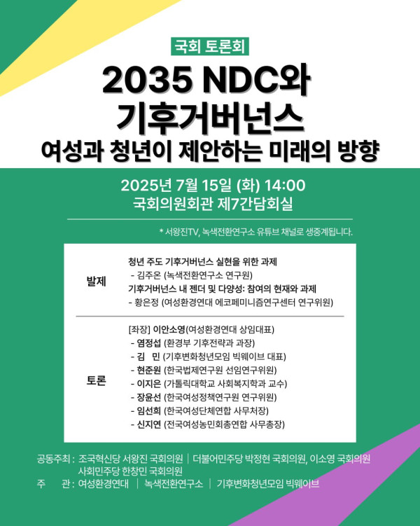 [토론회] 2035 NDC와 기후거버넌스: 여성과 청년이 제안하는 미래의 방향