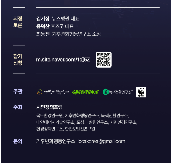 [포럼] 기업 기후행동 평가 : 현황, 성과 그리고 한계 2024-06-18 0 55 2024.06.18 09:33 ✔️ 일시 : 2024년 6월 25일 (화) 오후 2시 ~ 5시✔️ 장소 : 프란치스코 교육회관 220호 (중구 정동길 9)✔️ 참가신청 https://zrr.kr/M2q2 신청자에 한해 온라인 Zoom 링크 발송