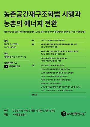 [토론회] 농촌공간재구조화법 시행과 농촌의 에너지 전환