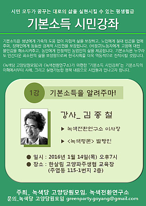 [강연안내] 시민 모두가 꿈꾸던 삶을 실현할 평생월급, 기본소득!