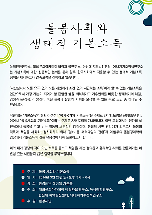 제2차 생태적 기본소득 포럼 "복지국가와 생태적 기본소득" 개최 안내