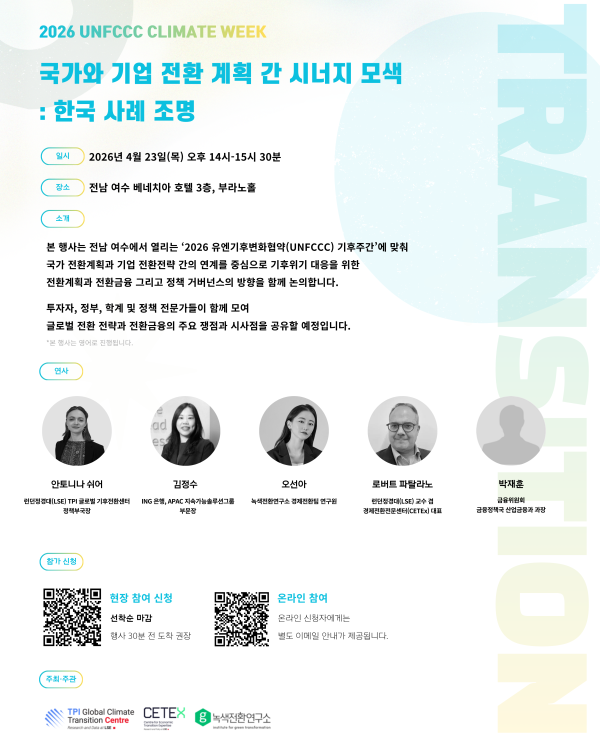 2026 UNFCCC 기후주간 사이드 이벤트: 국가·기업 전환계획의 시너지 탐색, 한국을 중심으로